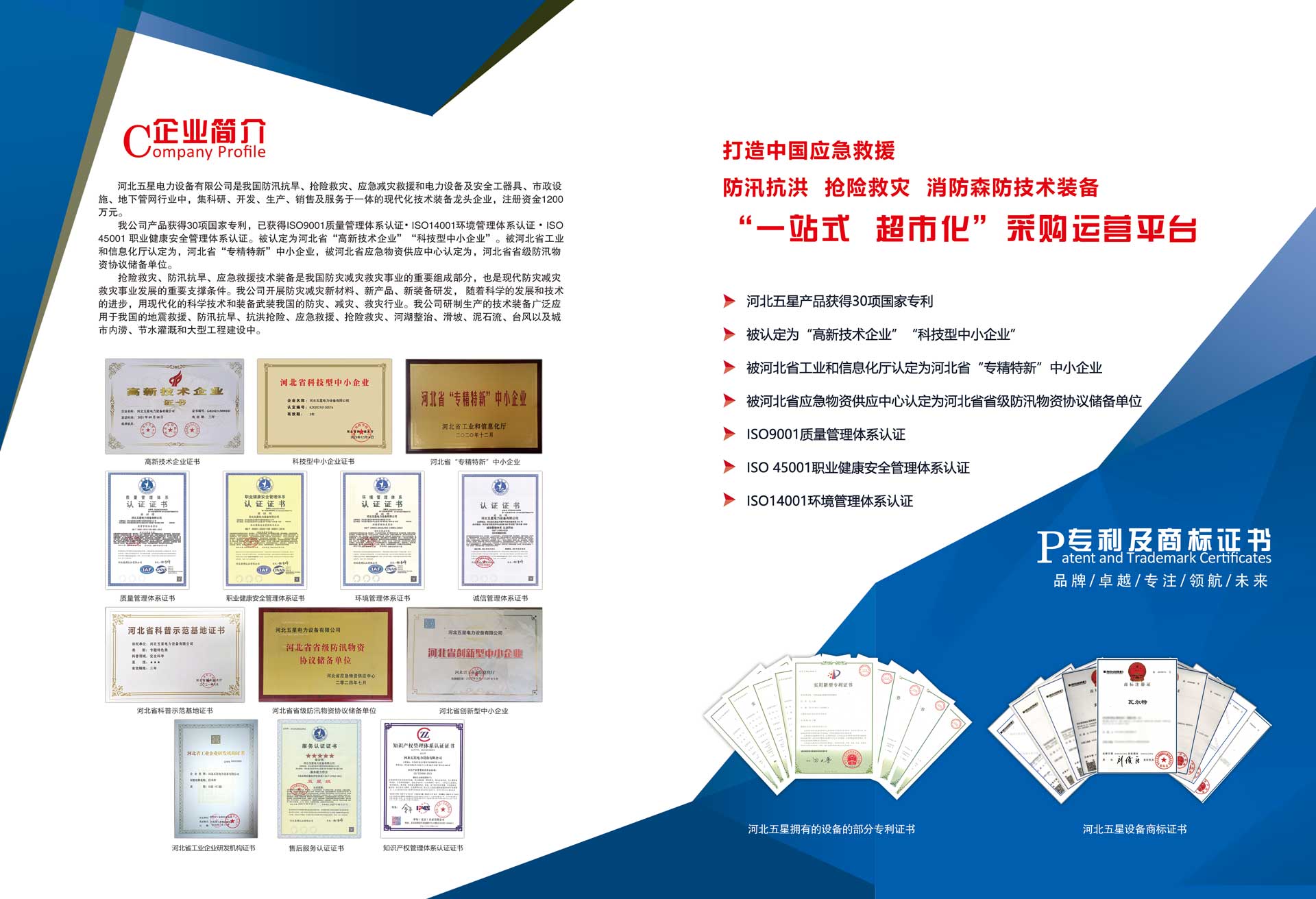河北五星電力設備有限公司是我國防汛抗旱、搶險救災、應急減災救援和電力設備及安全工器具、市政設施、地下管網(wǎng)行業(yè)中,集科研、開發(fā)、生產(chǎn)、銷售及服務于一體的現(xiàn)代化技術裝備高新技術企業(yè),注冊資金1200萬元?! ∥夜井a(chǎn)品已獲得ISO9001質量管理體系...